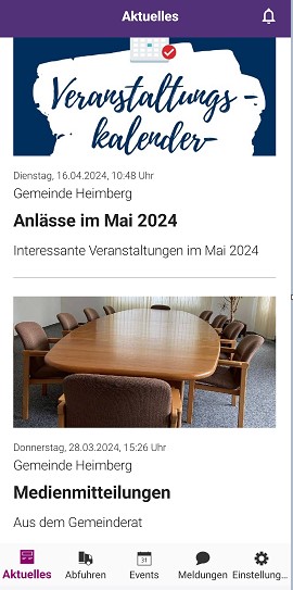 Mit der City App erhält die Bevölkerung Neuigkeiten aus der Gemeinde Heimberg regelmässig direkt aufs Smartphone – auf Wunsch mit Push-Benachrichtigungen.