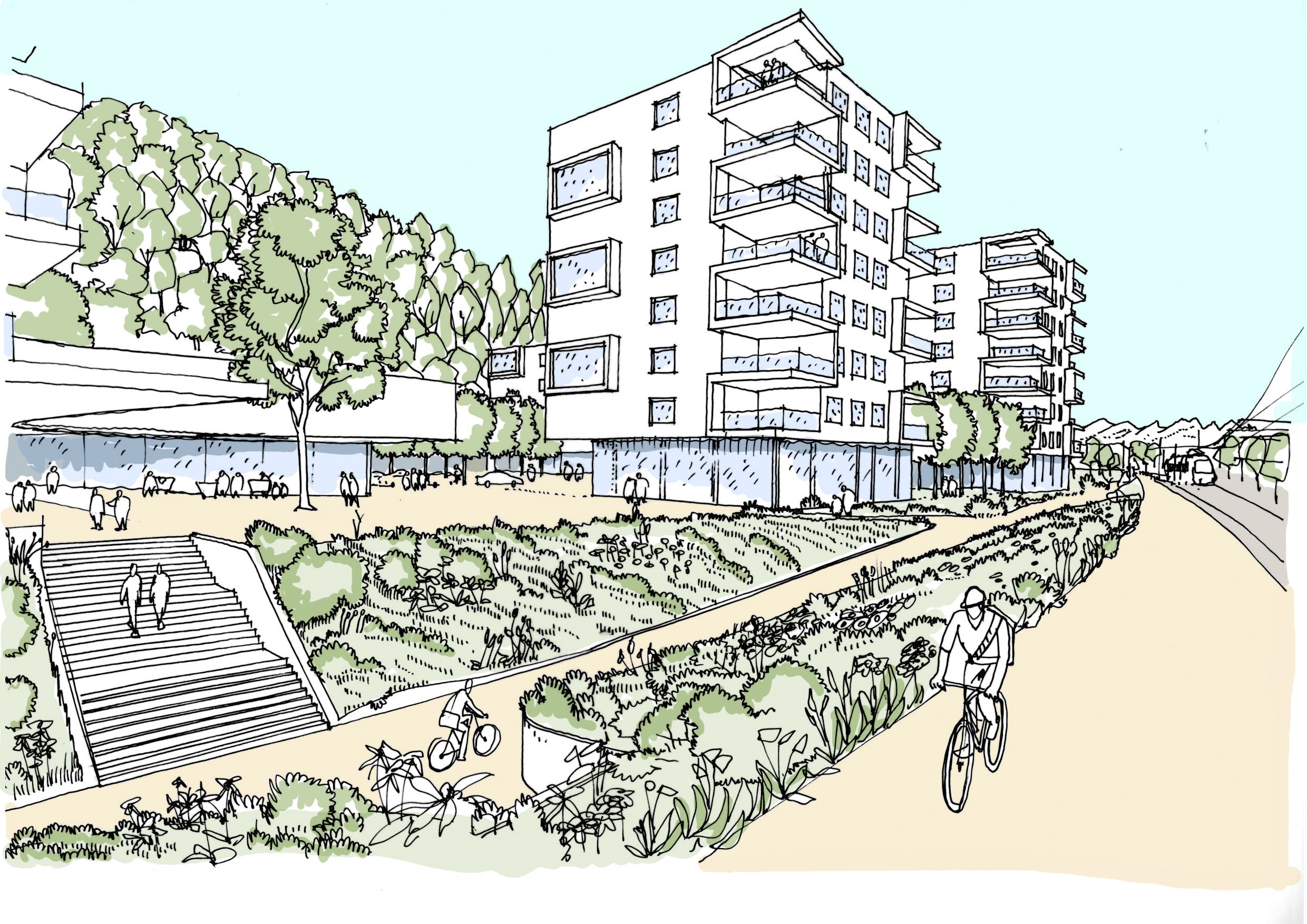 Auf dem Land der Genossenschaft Migros Aare soll eine Überbauung für Wohnen, Gewerbe und Einkaufen entstehen. Momentan werden die entsprechende Überbauungsordnung und der Strassenplan erarbeitet. Im Sommer soll's in die Mitwirkung gehen.