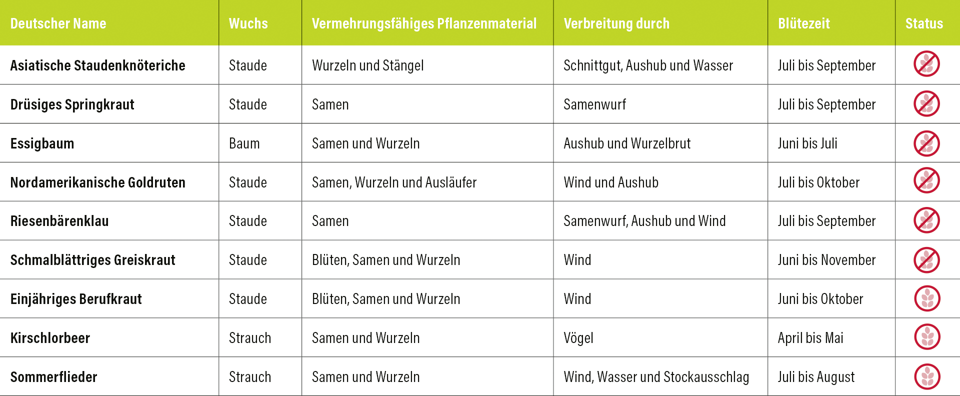 - Sie sind verpflichtet, die Ausbreitung dieser Pflanzen zu verhindern.